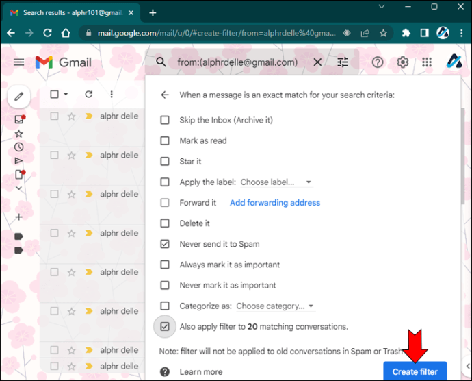 - Klik Create filter lagi untuk menyimpan.